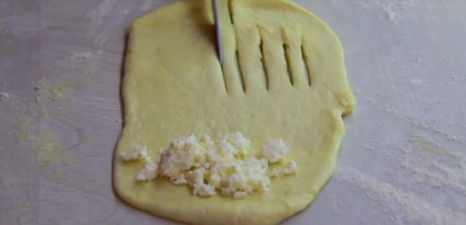 • Roll out the buns, spread filling on one half according to taste (savory or sweet) and cut the opposite side of the dough with a pastry wheel or knife.