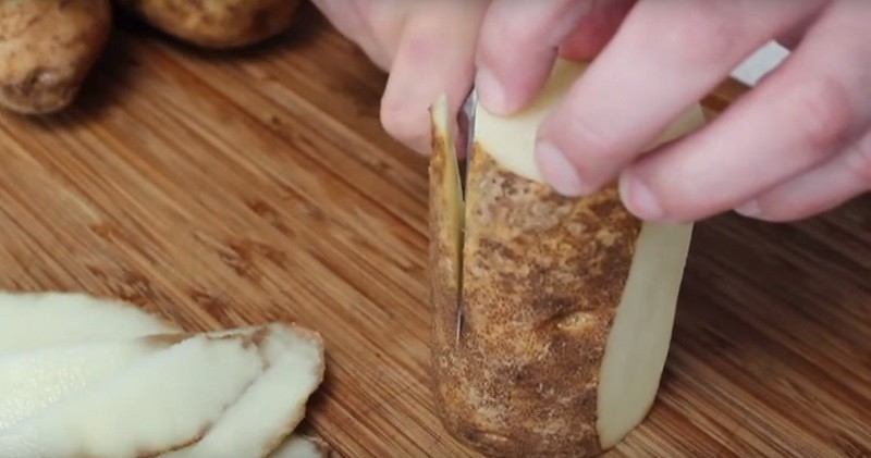 • Slice the potatoes: Slice them into rounds, as shown in the picture (if you have one).