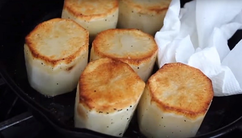 • Sauté the potatoes: Heat the vegetable oil in a pan and fry the potatoes on each side until golden.