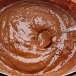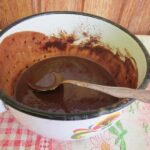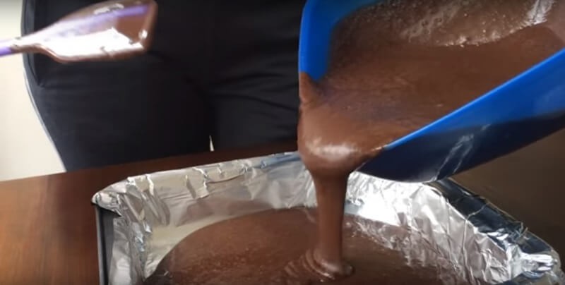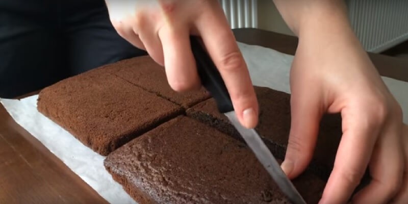 - Dough: In a saucepan, heat the milk, cocoa, sugar and butter. Cook the mixture until all the ingredients melt and combine. Then remove from the heat and let cool. Add the flour, baking powder and eggs to the cooled mixture. Mix with a whisk or a mixer on low speed. Line a baking pan with parchment paper or foil and pour the batter evenly into the pan. Bake in a preheated oven at 180 °C for about 25 minutes. After baking, let the cake cool, then remove it from the pan.