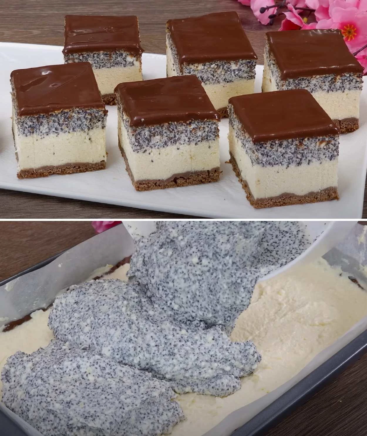 The three-flavour cake is proof that the classic combination of poppy seeds, quark and chocolate never disappoints. It looks impressive when sliced, is full-bodied and harmonious in taste, and yet it’s an honest homemade dessert without unnecessary frills. A great candidate for family celebrations and Sunday coffee – once tried it will become a staple in your repertoire.
