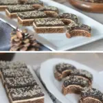 These walnut bars with egg-yolk glaze and chocolate cream represent a classic that never disappoints. The delicate dough with whipped egg whites is perfectly tender, the egg-yolk glaze adds a gentle softness and the chocolate-and-walnut cream provides an unmistakable flavor. They taste best the next day, when all the layers beautifully meld together. A great dessert that deserves a place on every festive table.
