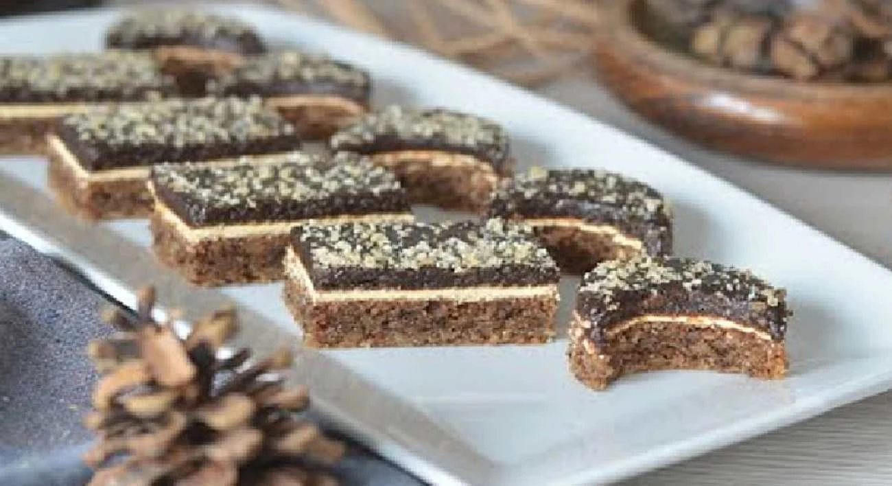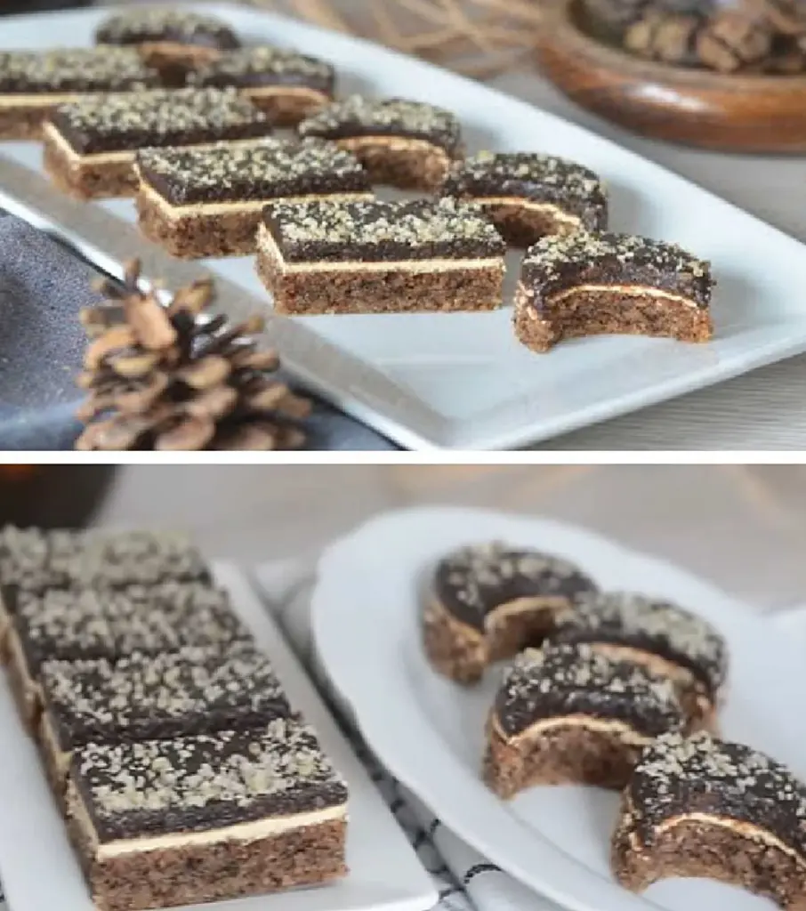 Walnut bars with egg-yolk glaze and chocolate cream: a traditional dessert with an irresistible flavor recept