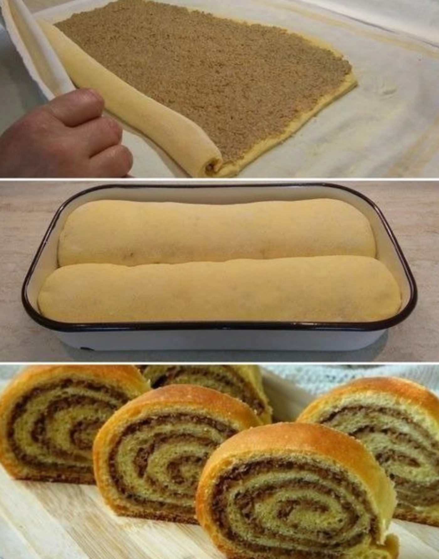 Always spread the nut filling cooled; hot filling would make the dough soggy.