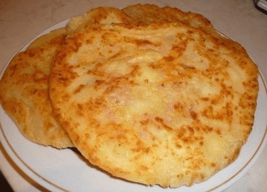 - Shaping the pancakes: Shape the dough into smaller balls. Put the filling (ham and cheese) into the center of each ball and carefully close it to form a pancake.