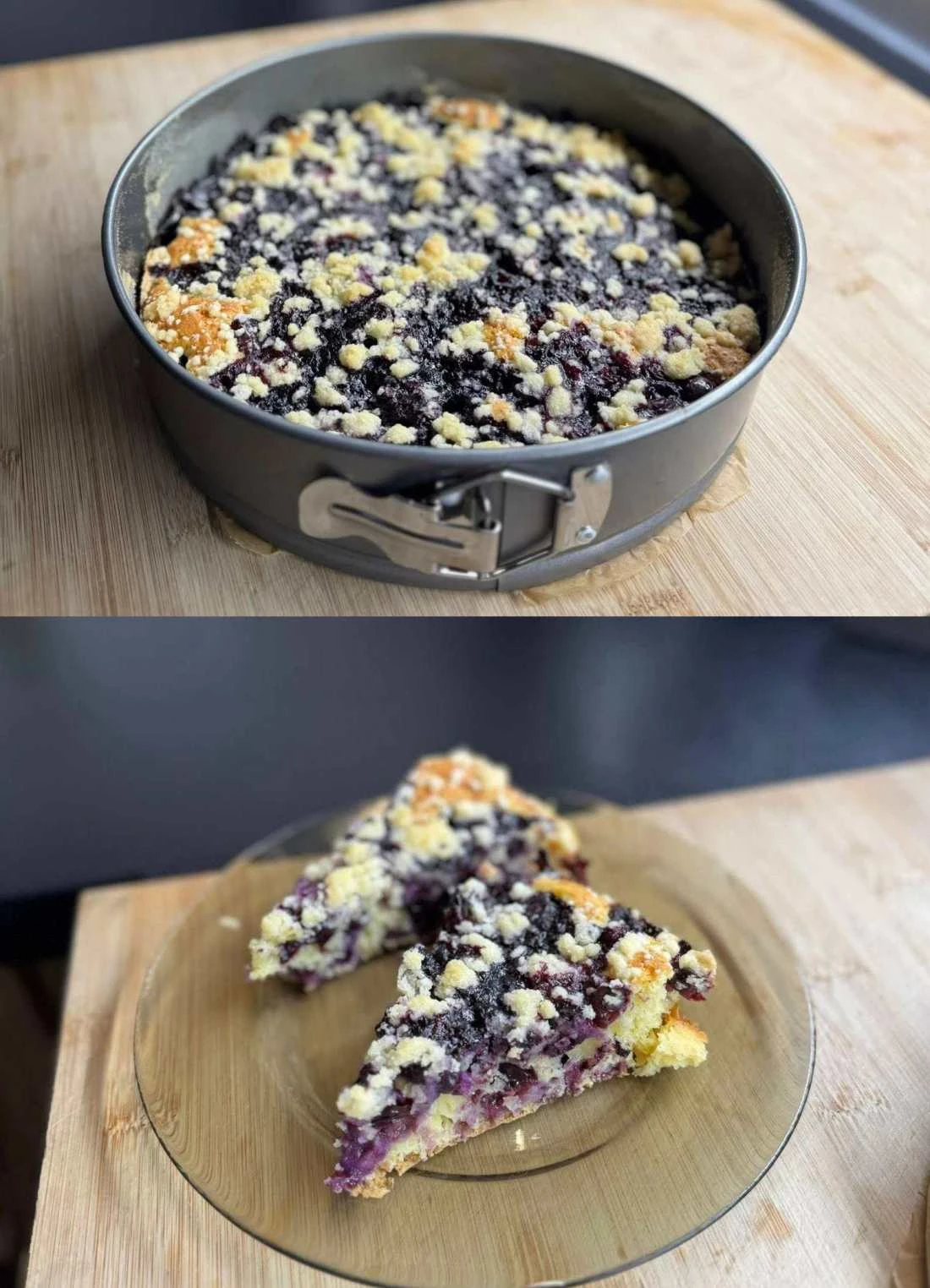 The yogurt cake with fruit and crumble is an ideal solution when you need to quickly bake something sweet for coffee. It is moist, fragrant and, thanks to the fruit, refreshing. In addition, it doesn’t require weighing ingredients — the yogurt pot is enough as a measure. It is great not only for beginners but also for experienced bakers looking for a simple and tried-and-true recipe.