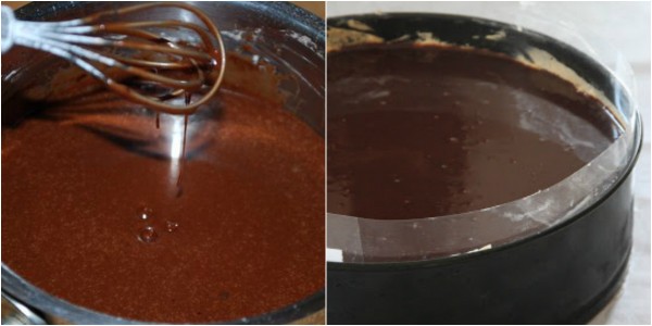- Preparation of the chocolate glaze: In a saucepan over low heat, melt the chocolate with the butter and cream. Stir until the mixture is smooth and let it cool to room temperature.