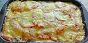 Baked zucchini „bašavel“ in one baking dish: with minced meat, tomatoes and cheese