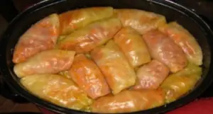 Stuffed meatballs with cheese and a rice center in a tomato-mustard sauce
