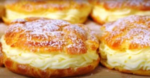 Fluffy homemade pudding puffs with mascarpone