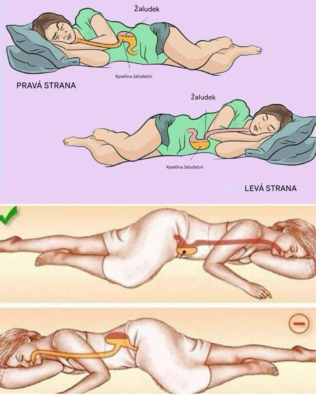 If you suffer from acid reflux or heartburn, lying on your left side can be a big help. In this position, stomach acids have a harder time traveling back into the esophagus, thereby reducing unpleasant sensations and nighttime awakenings.