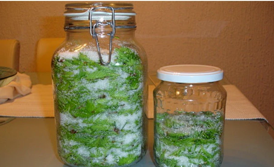 - Place the shoots in a jar or container in layers and sprinkle each layer with sugar. Gently press each layer down with a pestle or your fist.