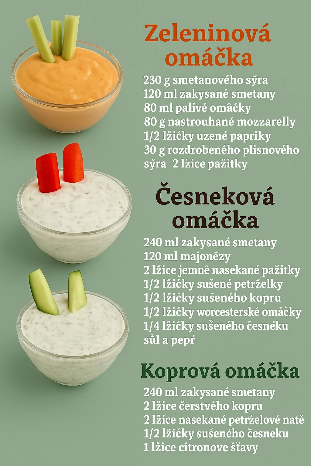 Three irresistible homemade sauces for grilling and vegetables: vegetable, garlic and dill